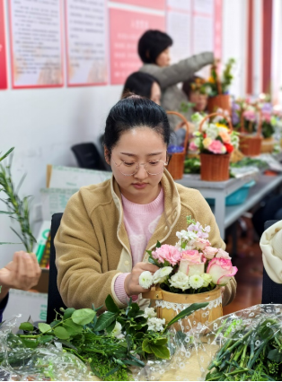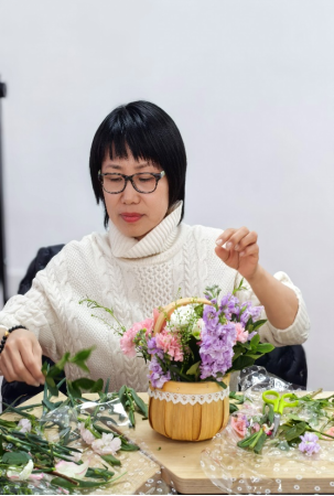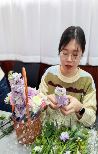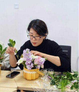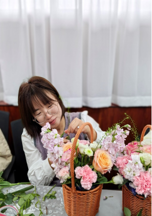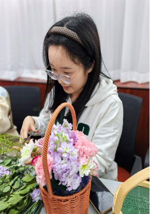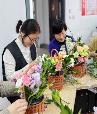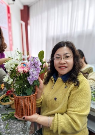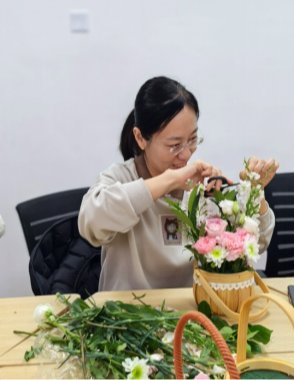 随后,在专业花艺师的指导下,活动进入轻松愉快的创作环节。伴随着舒缓流淌的轻音乐,老师们兴致勃勃地挑选花材、修剪枝叶、构思造型。向日葵的灿烂、康乃馨的温婉、玫瑰的热烈、雏菊的清新……在一双双巧手的打理下,零散的花枝逐渐变成了一件件独具匠心的花艺作品。或清新淡雅,或热烈奔放,每一件作品都承载着创作者对美的理解和对生活的热爱。老师们时而专注创作,时而互相欣赏,现场欢声笑语不断,花香与笑脸相映成趣,汇成春日里最动人的画卷。