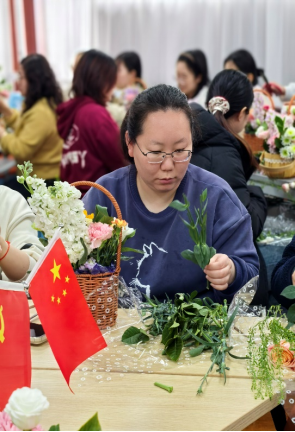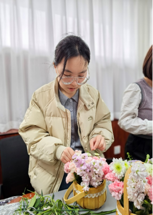 恰逢3月5日学雷锋纪念日,分工会主席张华特别提到,雷锋精神与新时代女性的向上向善品质高度契合。希望大家将无私奉献、爱岗敬业的精神品格,将积极向上、向善向美的正能量,融入日常学习、生活和工作中,让善美之花在岗位绽放,让师德之光温暖校园。她巧妙地将花道与师道联系起来:“插花讲究取舍有度、错落有致,正如教育需要因材施教、循循善诱;花道追求形神兼备、意境深远,正如师道需要德润人心、春风化雨。”这番话语引发了在场老师们的深深共鸣。